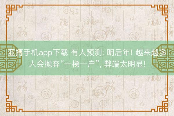 亚搏手机app下载 有人预测: 明后年! 越来越多人会抛弃“一梯一户”, 弊端太明显!