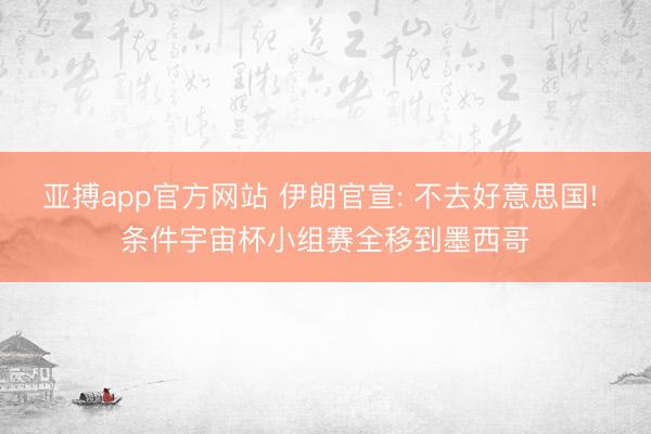 亚搏app官方网站 伊朗官宣: 不去好意思国! 条件宇宙杯小组赛全移到墨西哥
