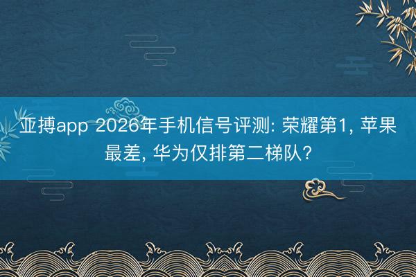 亚搏app 2026年手机信号评测: 荣耀第1, 苹果最差, 华为仅排第二梯队?