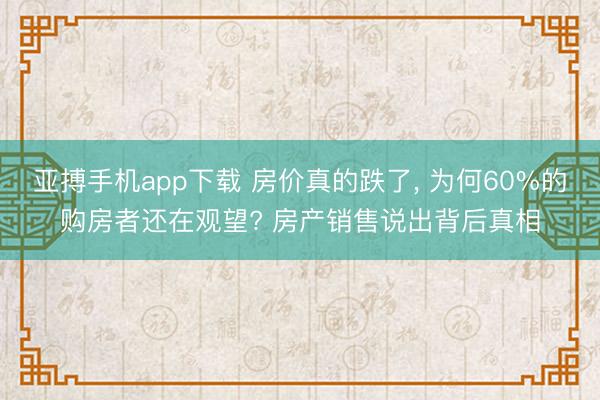 亚搏手机app下载 房价真的跌了, 为何60%的购房者还在观望? 房产销售说出背后真相