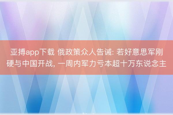 亚搏app下载 俄政策众人告诫: 若好意思军刚硬与中国开战, 一周内军力亏本超十万东说念主