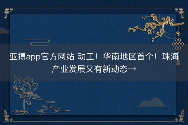 亚搏app官方网站 动工!华南地区首个!珠海产业发展又有新动态→