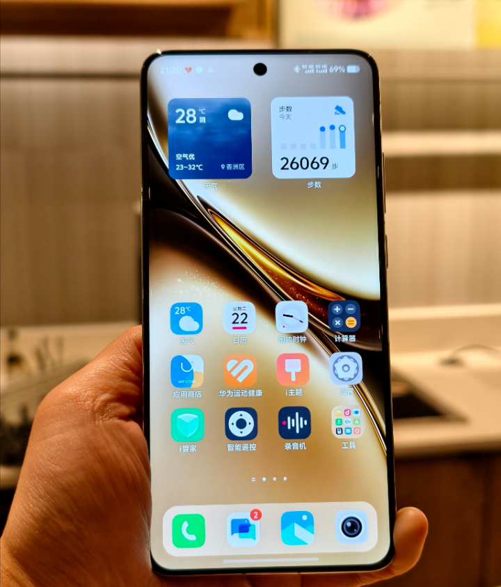手机正面是一块6.78英寸的全等深微曲屏,支持120Hz的自适应刷新率,滑动跟手,观感舒适。它还兼顾了护眼需求,拥有2160Hz的高频PWM调光。屏幕外覆盖的铠甲玻璃,以及机身本身的铝合金中框和IP68+IP69级防尘防水,都让它显得足够皮实耐用,日常使用更安心。