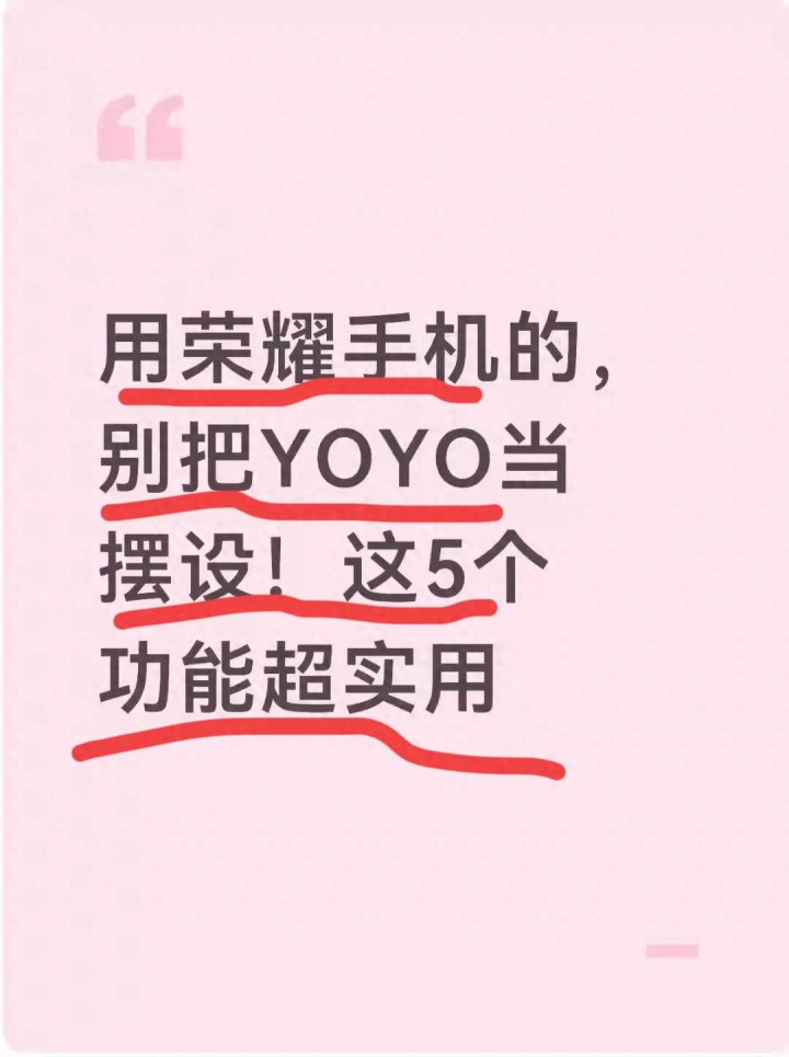 身边好多荣耀用户,买手机后只把YOYO当“查天气、设闹钟”的工具,喊半天没反应就觉得它是“摆设”,甚至直接关掉不用。但其实自从荣耀升级到MagicOS 8.0及以上版本,YOYO早就靠魔法大模型和端云协同技术,进化成了能省时间、少动手的全能助手——官方数据显示,只有23%的用户用到它的进阶功能,剩下77%的人白白浪费了手机的硬核配置。今天就把最实用的5个功能讲透,连基础设置技巧一起教,新手3分钟就能上手,学会之后手机好用度直接翻倍。