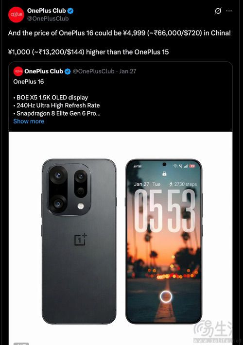 亚搏 一加16大量信息曝光, 售价或将从4999元起跳