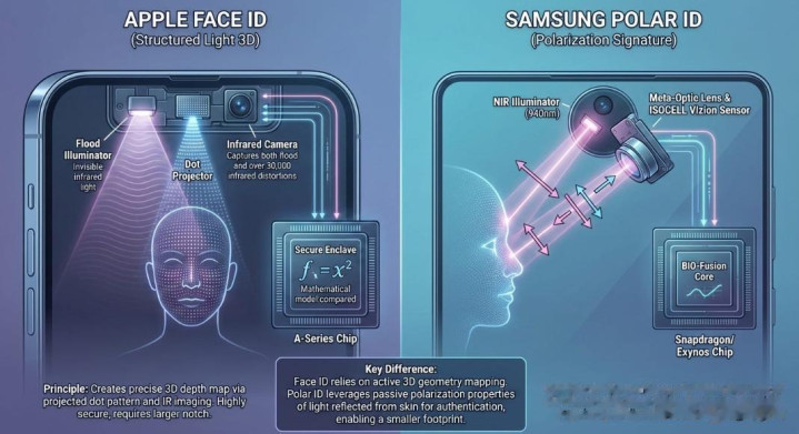 三星唯一一次接近在Galaxy智能手机上复制苹果Face ID技术,是其虹膜扫描仪,该扫描仪首次亮相于Galaxy S8系列。此后,公司已在设备中集成了可靠的指纹识别器,但Galaxy S27 Ultra可能提供比Face ID更高级的功能。最新报告提到了极地识别技术(Polar ID),该技术利用偏振光而非3D深度映射进行面部识别。这项技术的使用还消除了一个明显的障碍;需要一个开孔以容纳必要的部件。