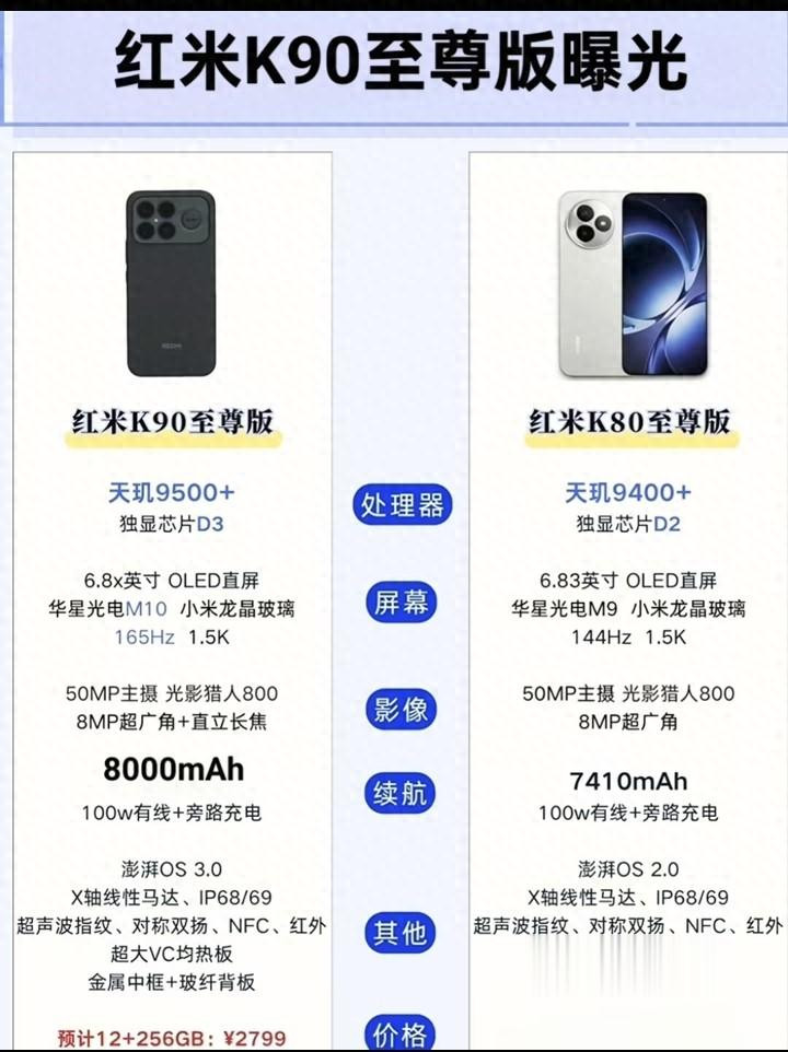 在竞争激烈的安卓中端市场,红米K系列始终扮演着“守门员”的角色,以极致的性价比挑战同价位产品的性能底线。随着新一代红米K90至尊版配置参数的曝光,我们终于有机会将其与前代爆款K80至尊版进行一次深度的“代际对话”。从核心处理器到屏幕素质,从影像能力到续航表现,K90至尊版展现出的全方位升级,不仅延续了K系列的强悍基因,更在多个维度上树立了新的标杆。