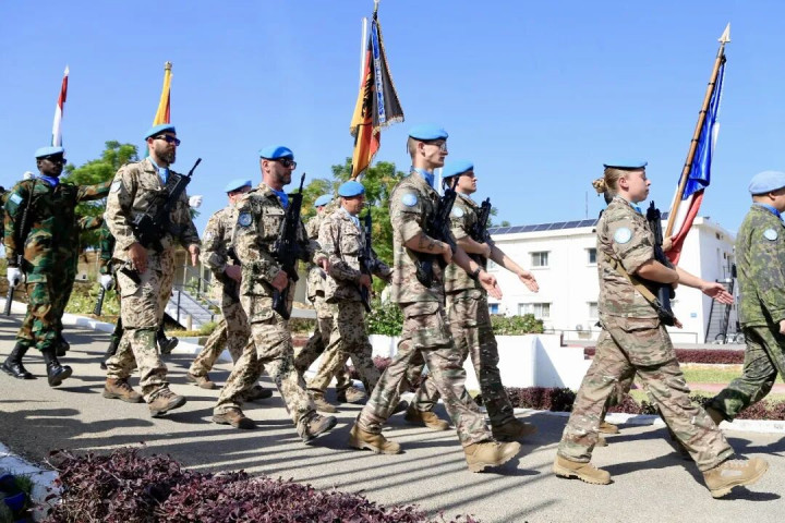 2025年10月24日,斡旋国驻黎巴嫩临时部队(联黎部队)在其位于黎南部纳古拉镇的总部举行典礼,牵记斡旋国成立80周年。新华社发(阿里·哈希绍摄)