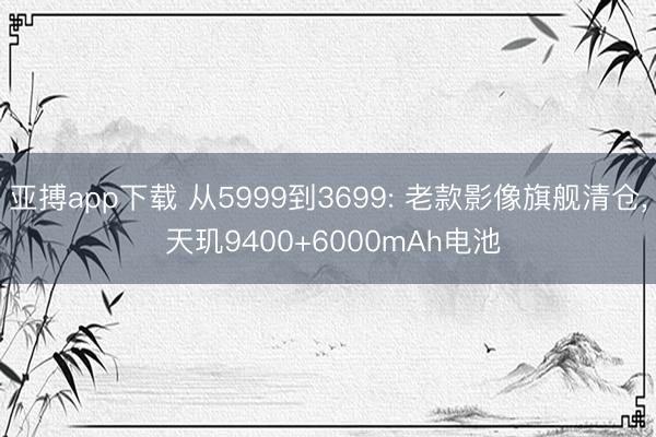 亚搏app下载 从5999到3699: 老款影像旗舰清仓, 天玑9400+6000mAh电池