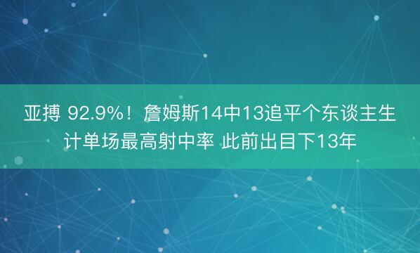 亚搏 92.9%!詹姆斯14中13追平个东谈主生计单场最高射中率 此前出目下13年
