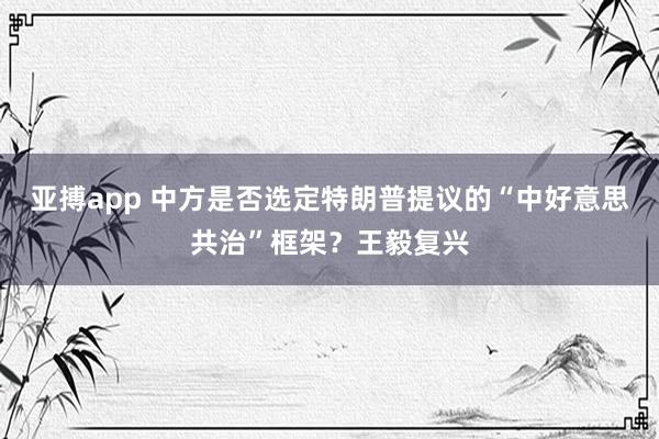 亚搏app 中方是否选定特朗普提议的“中好意思共治”框架?王毅复兴